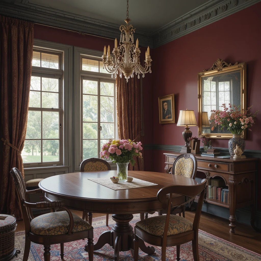 For a bolder, dramatic look, go for deep burgundy. It adds richness and a Victorian-era luxury feel — perfect for dining rooms or vintage-themed home offices.