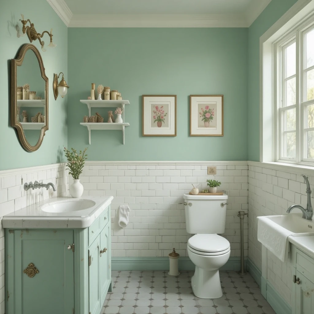 A pale mint green instantly gives your space a 1950s-inspired flair. It looks fresh in bathrooms, kitchens, or even vintage-themed cafés with white tile accents. Vintage Paint Colors
