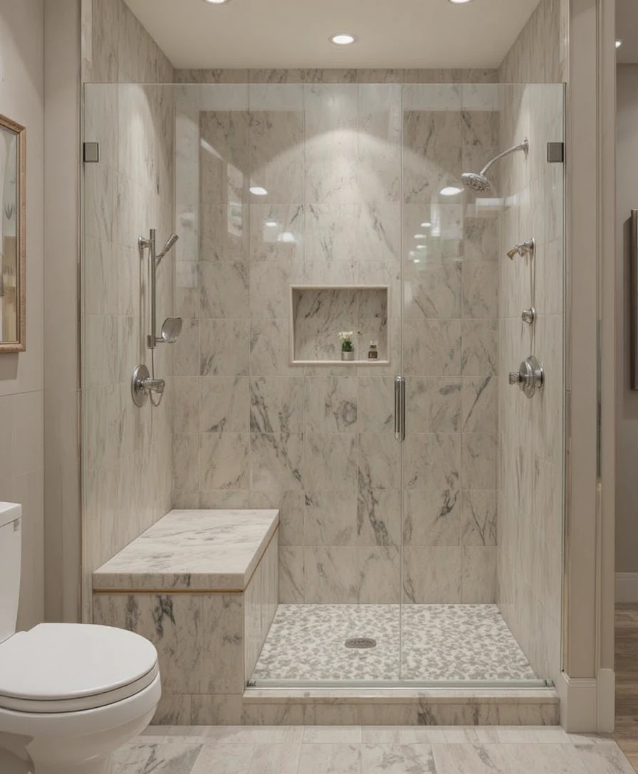 7. Marble Walk-In Shower Elegance
