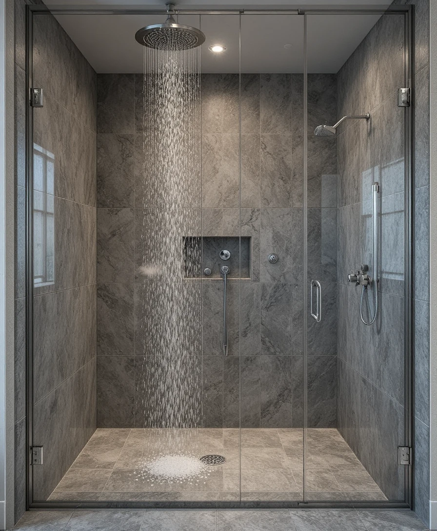 ✨ Use Large Tiles: Large-format tiles reduce grout lines, making your shower look seamless and spacious.