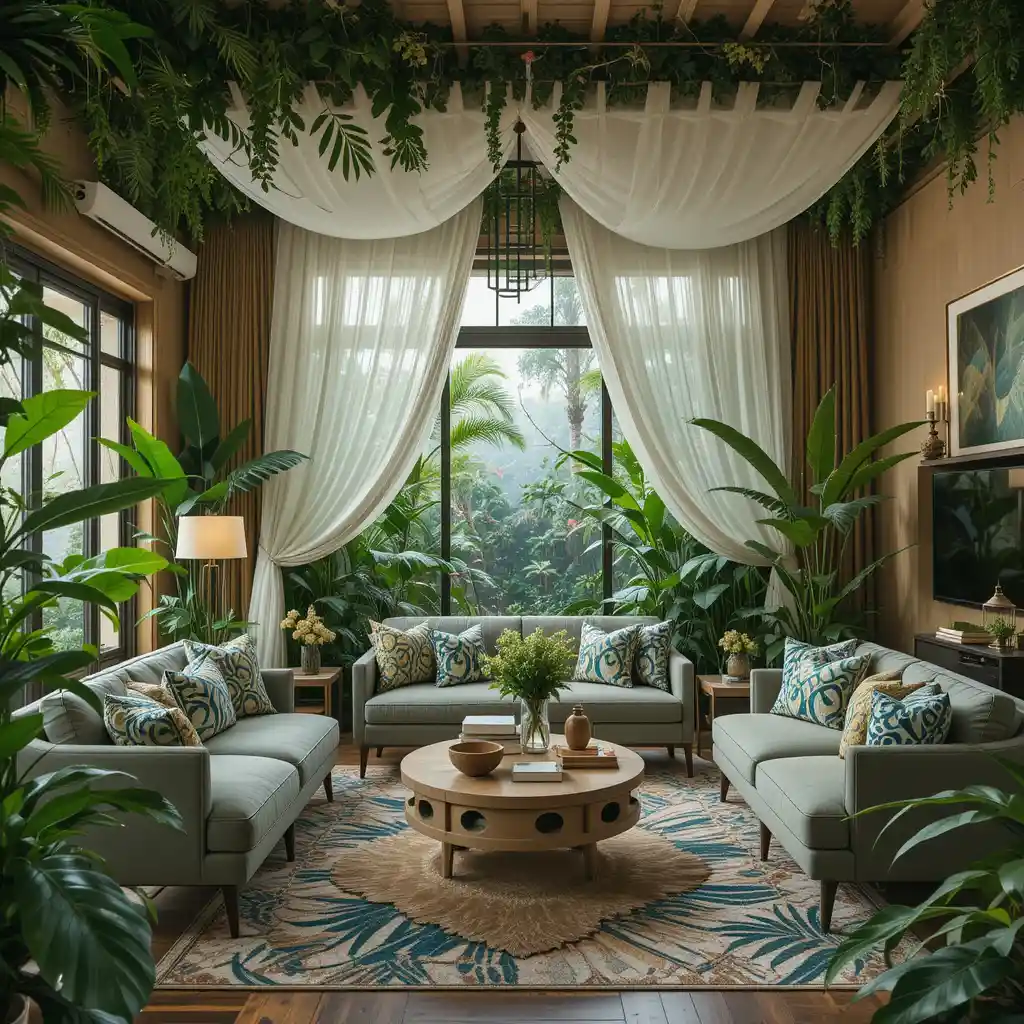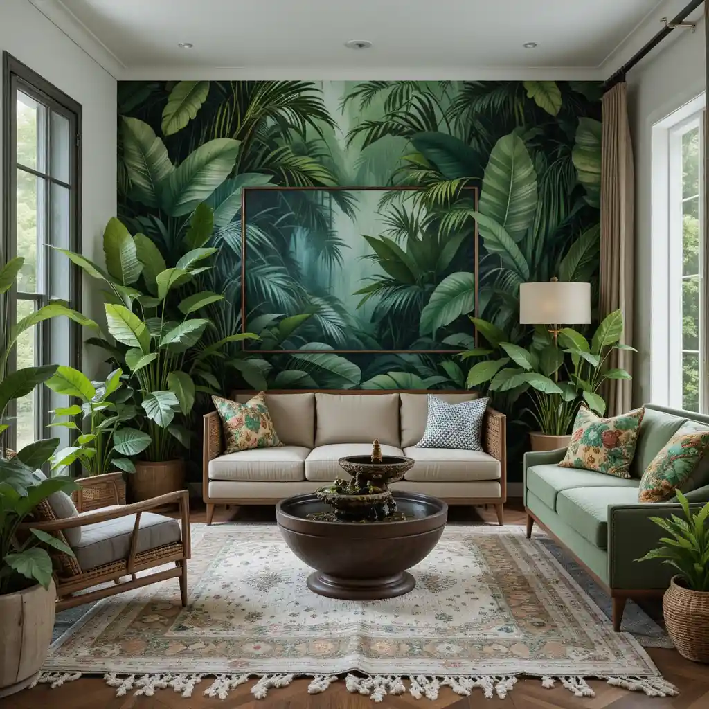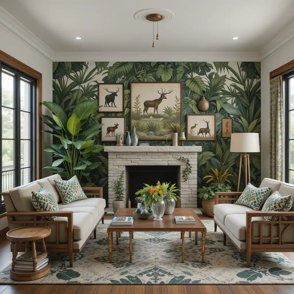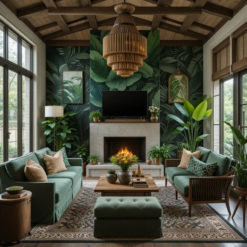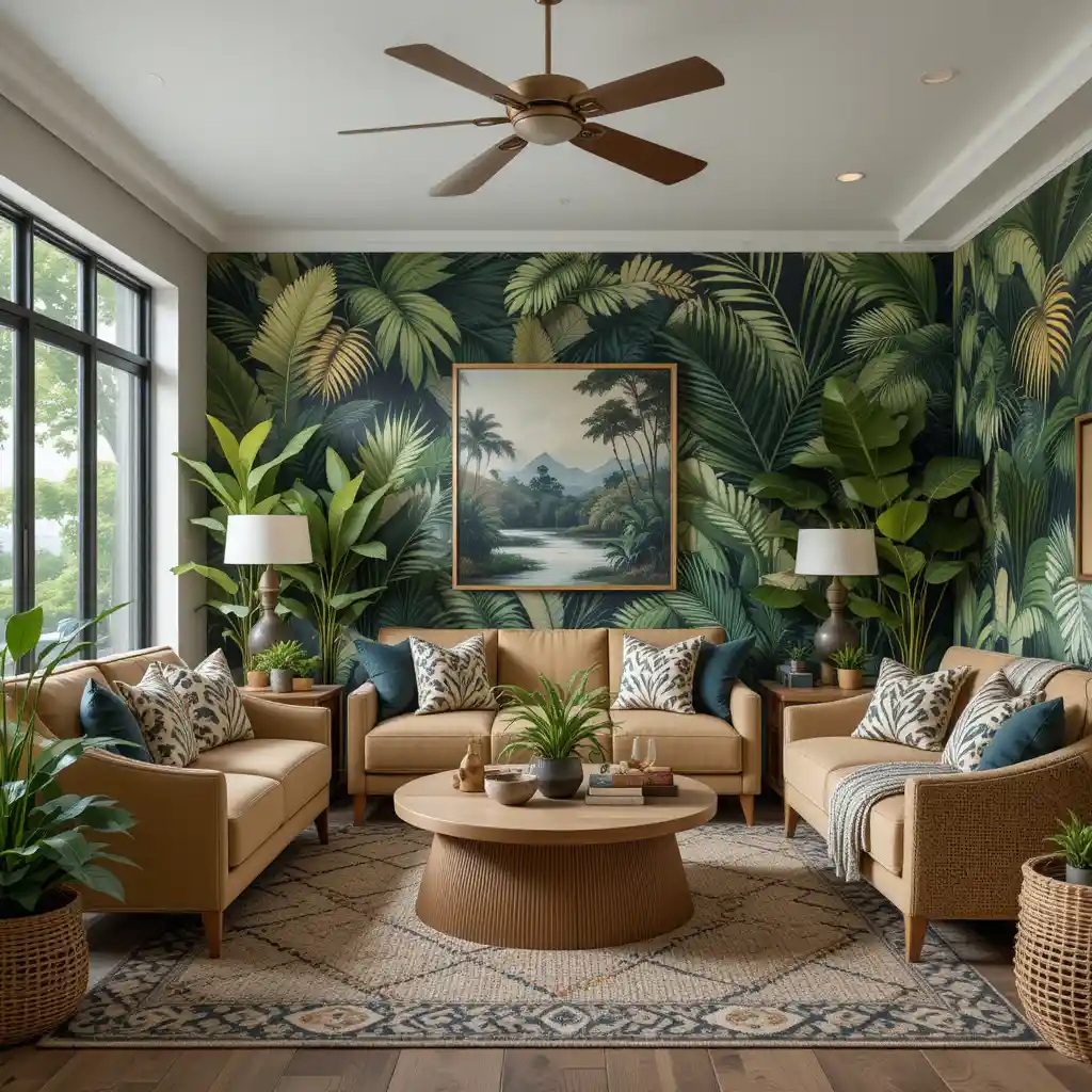 If you’re craving a space that feels alive, adventurous, and vibrant, a jungle theme living room is your perfect design solution. This bold style invites the outdoors in, blending lush greenery, earthy tones, tropical prints, and exotic textures. It’s fresh, exciting, and far from ordinary—perfect for homeowners who want to escape the mundane and create a nature-inspired oasis right in the heart of their home.
