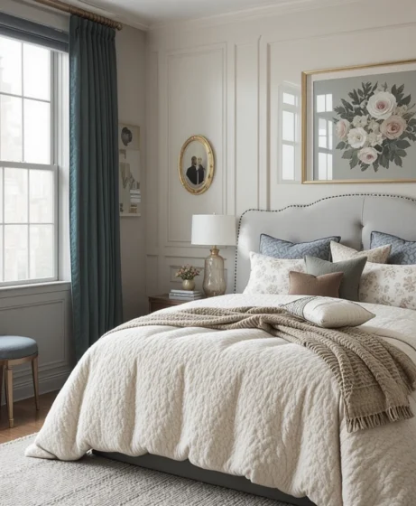 Velvet offers a luxurious winter look. Add velvet pillows, comforters, or bed frames to enhance richness and warmth. The fabric reflects light beautifully, adding a soft shimmer Winter Bedroom.