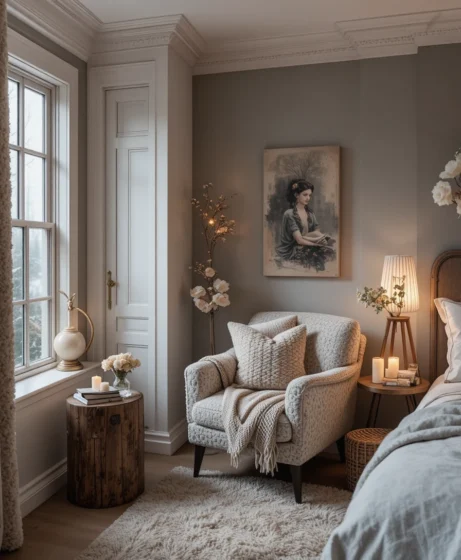 Create a small nook with a comfortable chair, soft throw, and warm lighting. This cozy corner becomes your winter escape for reading, relaxing, or sipping hot cocoa. Add a side table for books or candles.