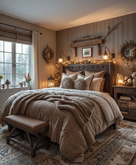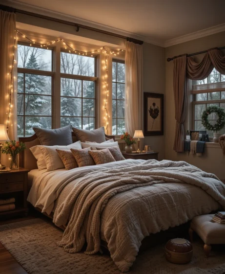 Use textures, warm lighting, layered bedding, and seasonal accents to make your bedroom feel like the ultimate winter sanctuary.