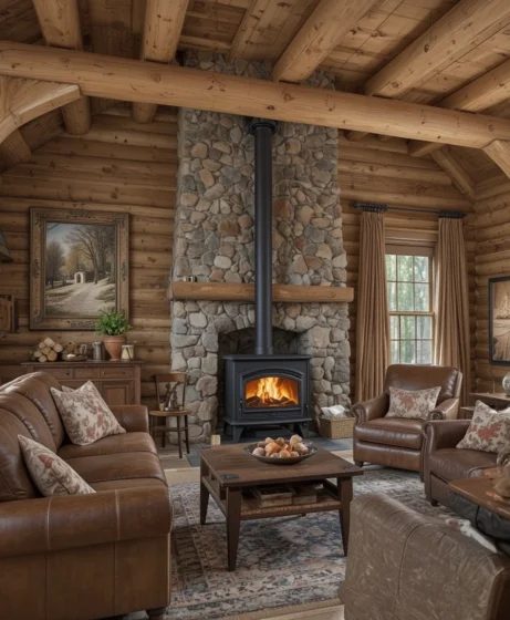 In log cabins or mountain homes, a sturdy wood stove becomes the heart of the living space. Paired with wooden beams and leather furniture, it creates a true rustic retreat Wood Burning Stove.