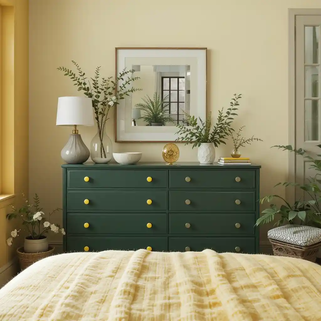 16. Add a Green Dresser with Yellow Hardware