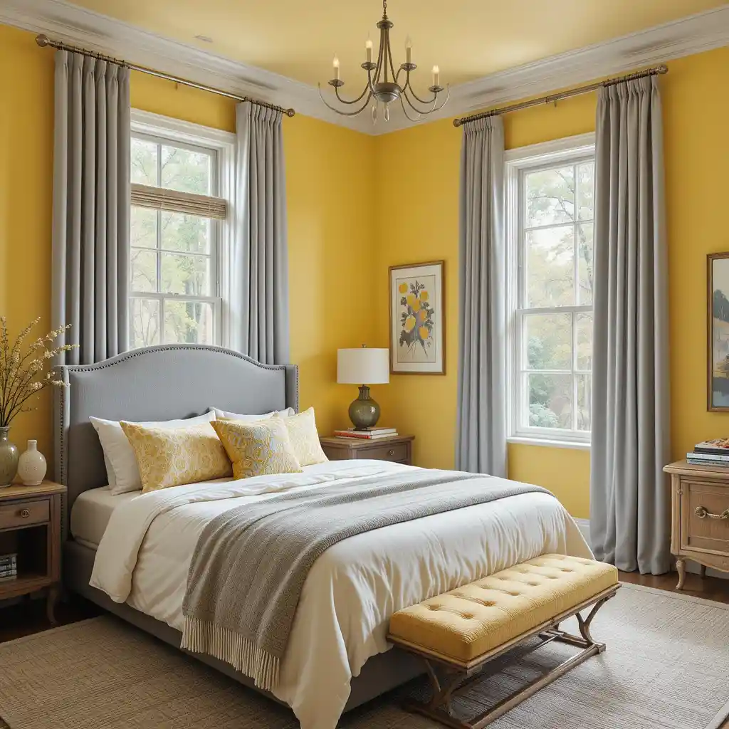 2. Pale Yellow Walls and Light Grey Curtains
