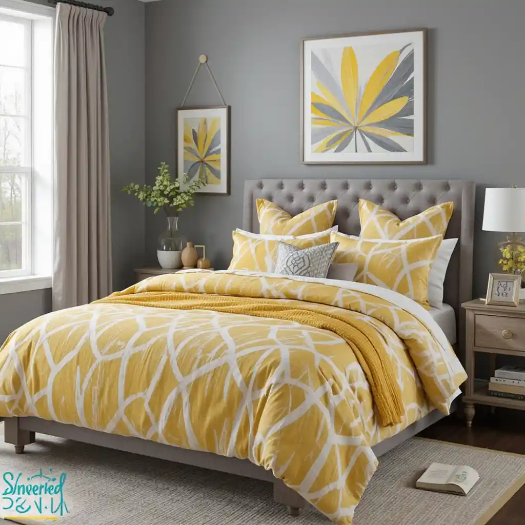 Opt for grey bed covers with yellow floral or botanical prints. The nature-inspired design brings a soft, feminine touch. Yellow and Grey Bedroom