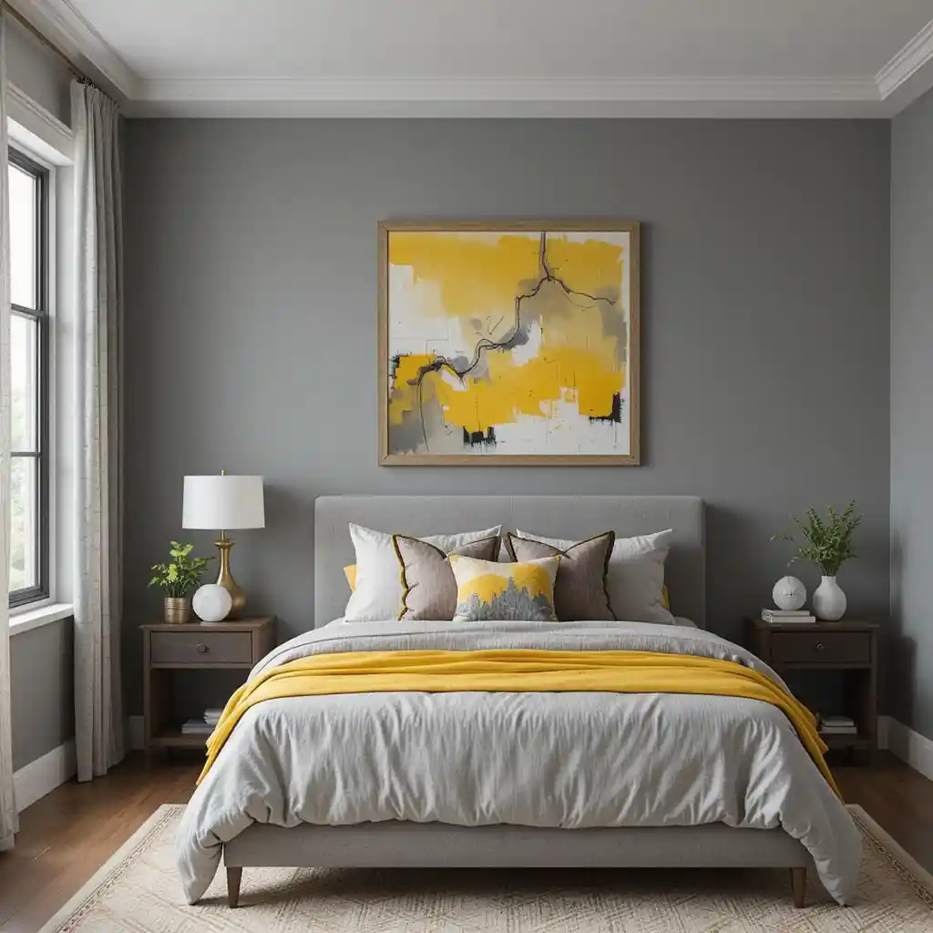 5. Grey Walls with Yellow Artwork