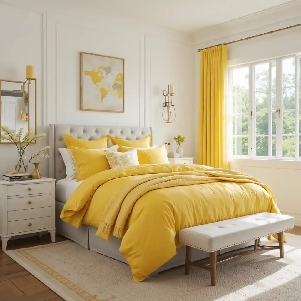 Let’s walk through 22 fresh yellow and white bedroom ideas that bring light, warmth, and style into your home — ideal for U.S. homeowners seeking that perfect blend of comfort and charm.