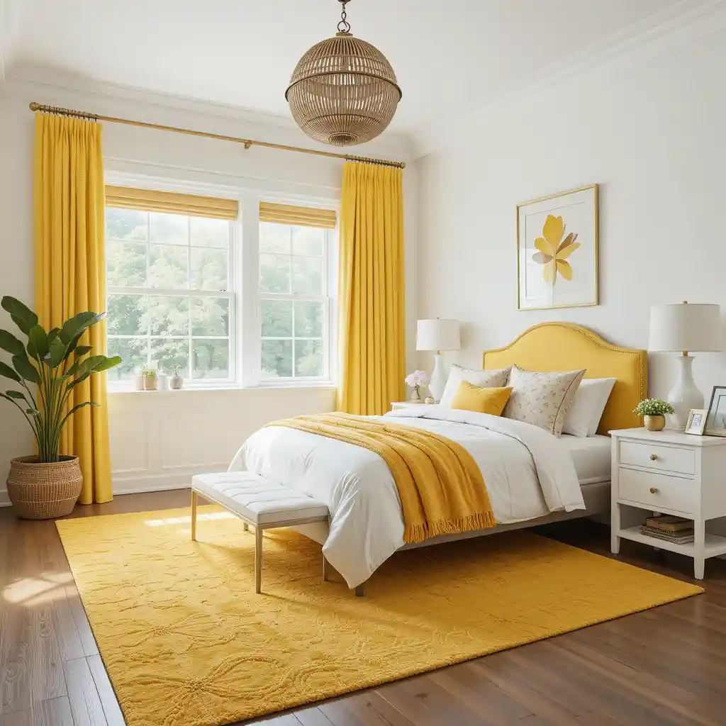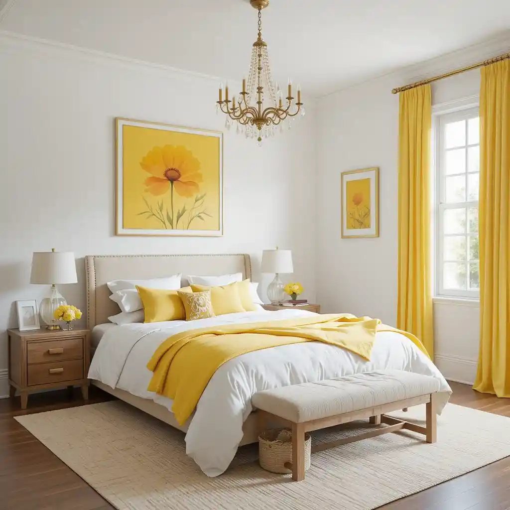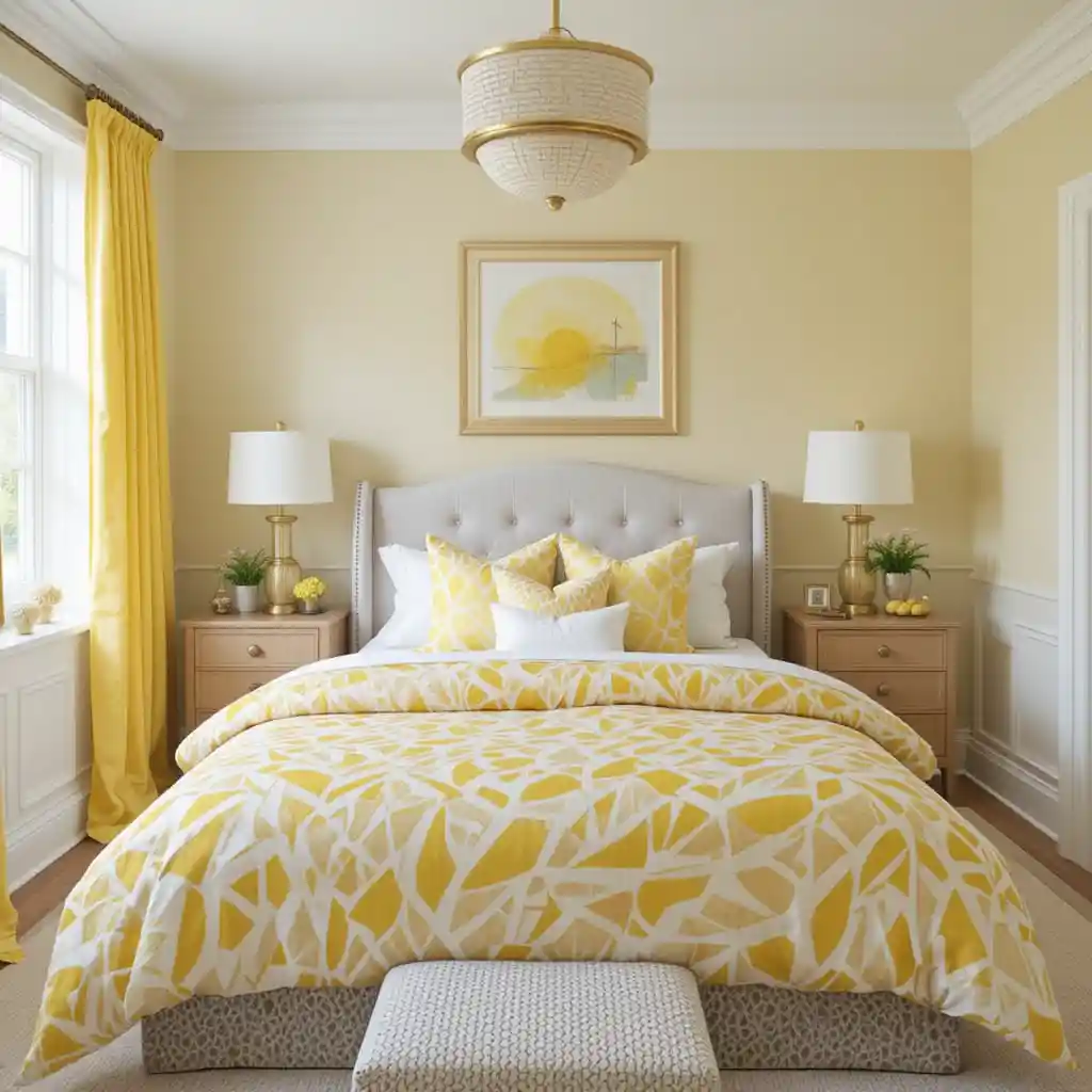 The mix of yellow and white in bedroom design is both classic and contemporary. It creates a mood that’s optimistic, restful, and full of personality.
