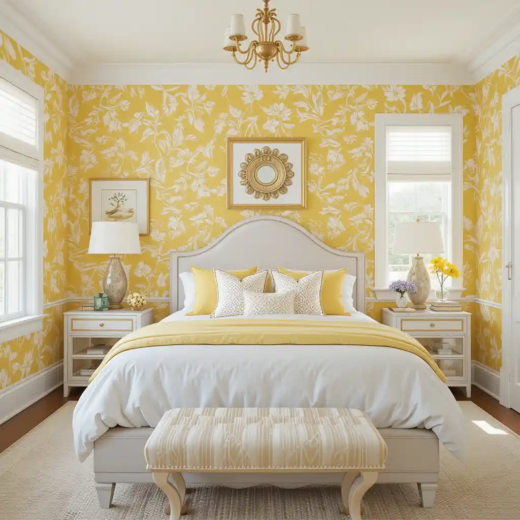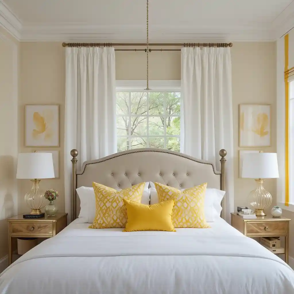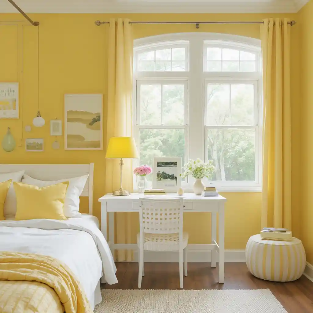 The mix of yellow and white in bedroom design is both classic and contemporary. It creates a mood that’s optimistic, restful, and full of personality.